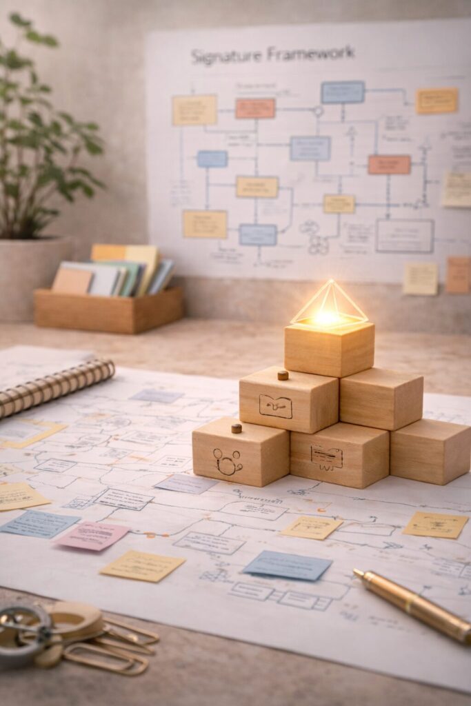 Signature Framework Mapping™ is a guided, high-touch consulting process designed to help you move from internal knowing to external clarity—without oversimplifying your work or forcing it into templates.